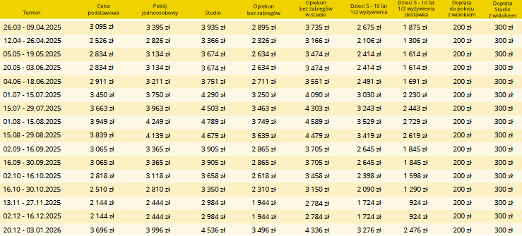 - 20 zabiegów z zalecenia lekarza (30 zabiegów podczas turnusów oznaczonych )