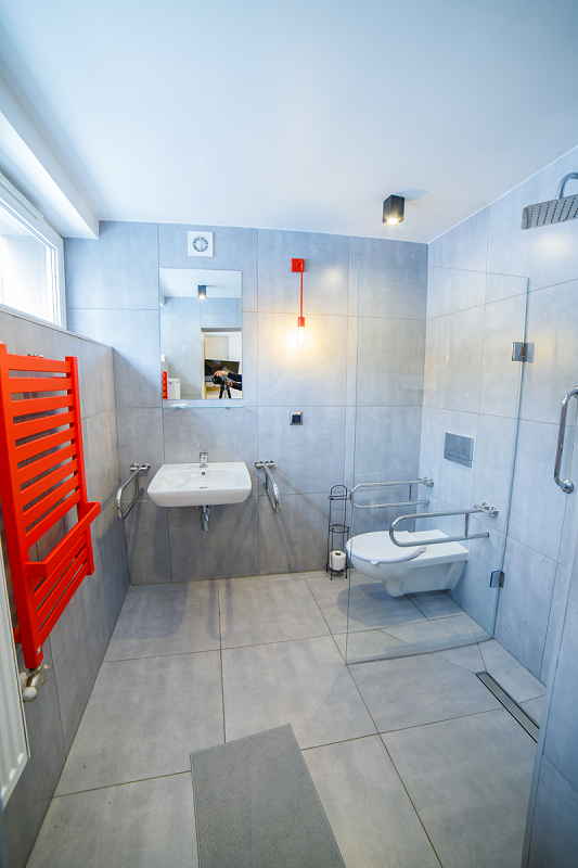 - na terenie obiektu znajduje się winda. Część pokoi dostosowana jest do potrzeb osób poruszających się na wózku bądź przy pomocy chodzika.