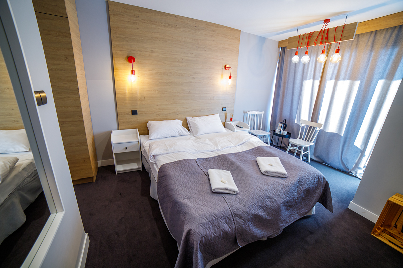 - pokoje 1 osobowe, 2 osobowe, studio 3+1 oraz przestronne apartamenty – wszystkie pokoje są urządzone w przyjemnym, nowoczesnym stylu i wyposażone w niezbędne udogodnienia, takie jak telewizja, dostęp do internetu czy czajnik elektryczny.