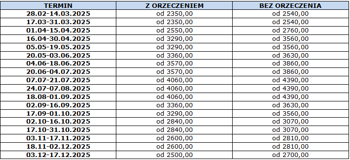 Cena obejmuje: